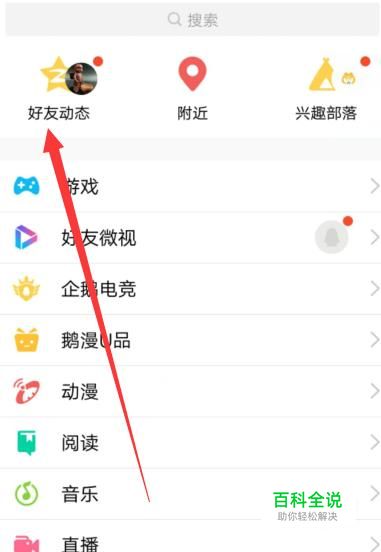 进入之后,找到“好友动态”,点击并进入,如图所示。
