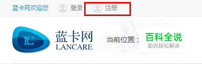 登陆蓝卡网首页后点击左上角的注册链接