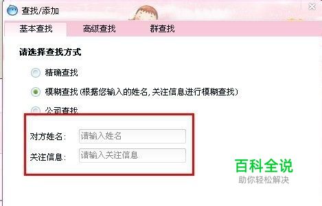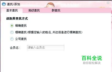 现在大家都在淘宝买东西,与卖家交流是必不可少的。阿里旺旺也就成了必要的联系工具,怎样才能加旺旺好友呢? 添加阿里旺旺好友有三种方法: 一、精确查找:输入对方会员名查找,点击“查找”按钮,如下图二、模糊查找,根据您输入的姓名,关注信息进行模糊查找。输入“对方姓名”或者“关注信息”,点击“查找”按钮三、公司查找,根据您输入的公司名或主营产品进行查找。