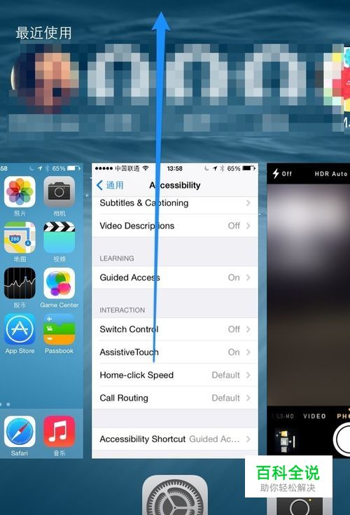 如果按 Home 主屏幕键解决不了,可以连按二次 Home 主屏键打开后台任务管理,退出卡死的应用。