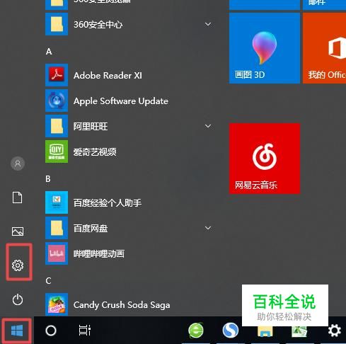 首先,我们打开我们的电脑,然后我们点击开始按钮,弹出的界面,我们点击设置;