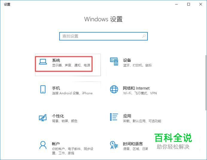 弹出的界面,我们点击系统,如图所示;