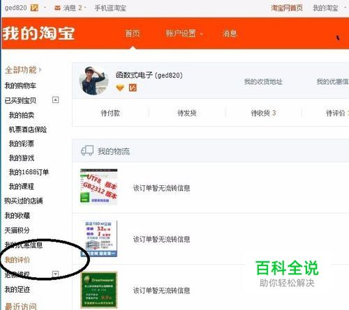 打开淘宝网,或者浏览器输入www.taobao.com,进入主页后点画圈处, 我的淘宝 如下图
