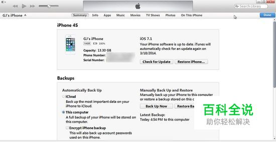 备份你的设备。在开始修复过程前,你将会看到是否要对设备进行备份的提示。使用iTunes的备份工具或iPhone上的iCloud确保你能对iPhone的当前状态进行备份。这能让你轻易地重载你的设置、图片和应用程序。