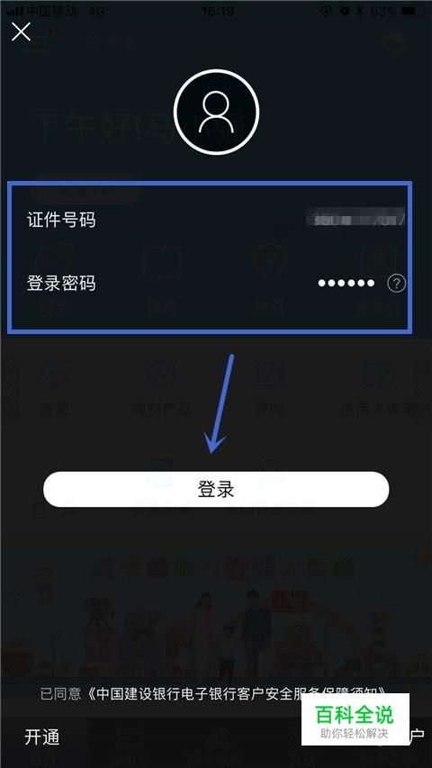 然后输入你的证件号码和登录密码并点击登录,如下图所示。