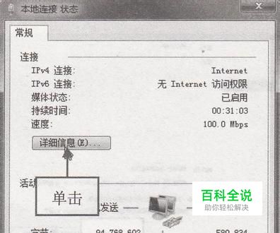 步骤2:弹出“本地连接状态”对话框,单击“详细信息”按钮,如下图所示。