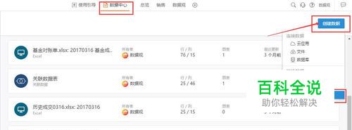 打开ETL编辑器:在“数据中心”处,点击“创建数据”,在下拉菜单中选择“ETL”,进入ETL编辑器。