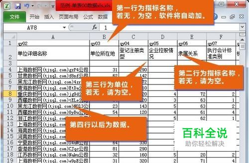 第一步: 导入Excel数据。 1、在导入Excel数据之前,请将Excel表格编缉成须是标准的前三行或前两行格式。标准前三行是指:第1行为代码(代码必须唯一),第2行为名称,第3行为单位;标准前两行是指:第1行为名称,第2行为单位,代码将由软件自动生成。格式如下图所示。具体请见数据参考范例(这些示例被安装在主程序目录下的“sample”文件夹中)。 注意:支持的Excel文件为2003格式,过高或过低版本,请在Excel中另存为“Excel 97-2003工作簿(*.xls)”格式。 2、点击导入XLS数据,选择Excel数据文件,导入,如下图所示。
