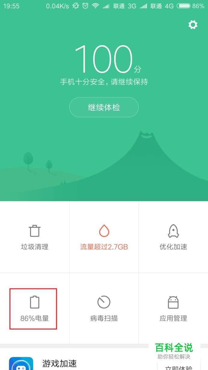首先,打开MIUI系统桌面,点击“安全中心”应用图标,在安全中心页面中,点击“电量”功能。