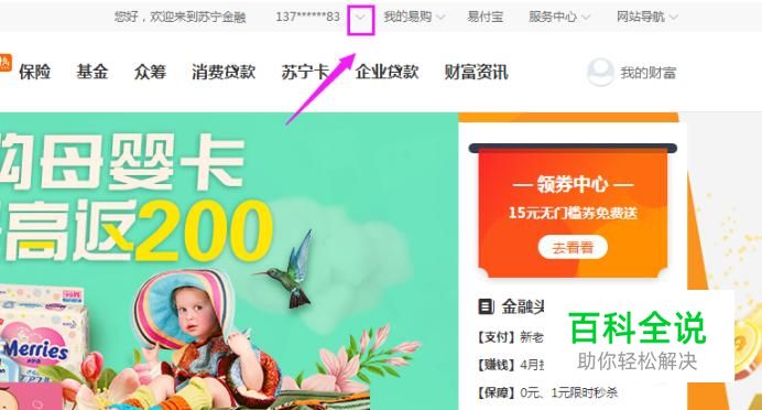 登录后,我们点击我们自己手机号那个倒三角形,如图。