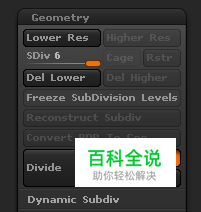 此时将鼠标悬停在工具控制组中的缩略图上查看模型信息,由于网格数量较低,不能取得较好的置换效果,所以继续细分,激活Tool>Geometry>Divide,设置细分级别为最高。 提示:投影大师将会把绘制在网格物体中的任何事物投影下去,因此模型的位置是非常重要的,一定要使工作区域尽可能的面对摄像机。