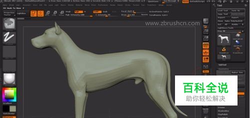 绘制前提示:进入投影大师模式之钱务必大细分调至到最高级别。 在工具控制面板中,单击“Load Tool”按钮载入工具。您可以使用自己制作完成的模型,也可以使用ZBrush默认提供的模型,在画布中按住鼠标左键并拖动拉出模型,按“T”进入编辑 模式。按Shift键让模型的侧面完成处于正角状态,按F键最大化居中显示物体。