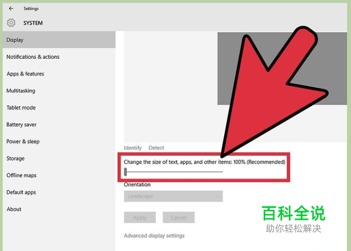 点击“高级显示设置”来更改指定项目的设置。如果你只想更改菜单栏、工具提示或其它项目的文本大小,你可以在这里进行设置,来实现在不更改桌面其它所有项目大小的前提下,只更改指定项目的文本大小。