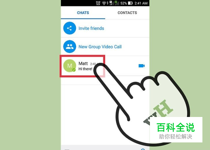 打开你和联系人(你想要屏蔽的联系人)的对话界面。如果你想要屏蔽某人,你需要先打开和他们的对话。你无法通过手动输入好友的用户名来屏蔽他们。 在安卓设备、iPhone和Windows设备上,这个操作大致是相同的。