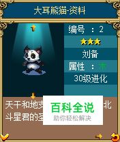2、大耳熊猫/帝王熊猫 熊猫,外表看似可爱,实则凶猛如熊的动物。大耳熊猫更是如此,有人甚至认为这种生长了大耳朵的怪物不应该算作熊猫了。大耳熊猫的强悍之处在于它那强大的防御力。天干老人和地支老人两位神仙曾得到过一只大耳熊猫,并作为生日礼物转赠给了北斗星君。据说这是世上仅存的十八只大耳熊猫之一,北斗星君非常喜爱。大耳熊猫进化时对食物非常讲究,必须要每日吃竹子精才可以。竹子精本身就是少见的妖兽,所以大耳熊猫进化时的食物非常非常难得,不少大耳熊猫都是在进化过程中被饿死的。大耳熊猫进化后会成为帝王熊猫,是一个极为高贵的神兽。