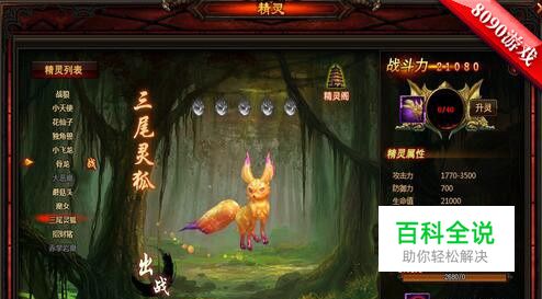 三尾灵狐需要250个三尾灵狐碎片合成。游戏中消费达到28888钻石便可以领取三尾令狐精魄。三尾灵狐的技能分为元素之力(火元素+200,毒元素+200,冰元素+200),元素之盾(毒元素抗性+60,火元素抗性+60,冰元素抗性+60,雷元素抗性+60)。满级的属性为:攻击力+1770-3500,防御+700,生命值+21000,命中+210,闪避+47。 809奇迹之光中,玩家可以通过三尾灵狐碎片进行精灵升灵,一共可以升灵5次,每次需要的三尾灵狐碎片会增加,升灵后的属性会大幅度提升。精灵阁也会对精灵产生影响,精灵阁等级越高,精灵的属性也会得到相应的提高,每级精灵阁提升1%的属性加成。