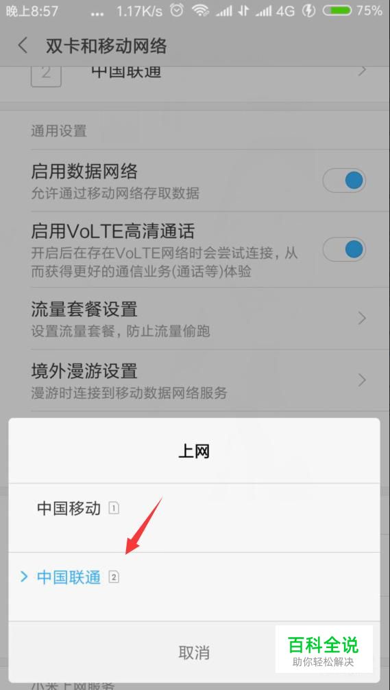 打开后找到“上网”这个选项,点击,选择你想切换上网的手机卡!