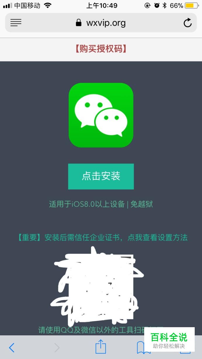 首先在iPhone手机的Safari搜索框里面输入如图的网址,点击安装,下载微信VIP版本。这个版本下载是不需要收费的,可以放心下载。