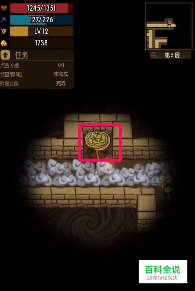 想要附魔装备我们首先要找到附魔所用的设备,在地图的第五层边缘,我们可以看到一个圆盘状的设备,那就是附魔所用的设备。