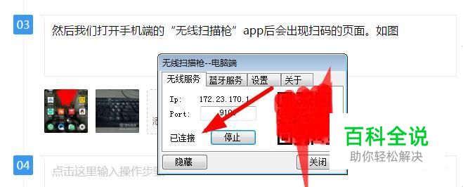 我们扫描电脑端的二维码后就显示“已连接”状态,这时候我们就可以拿手机当作扫描枪使用了。如图