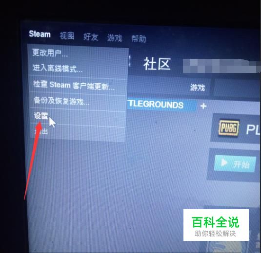 首先打开并登陆STEAM,点击左上角的设置。