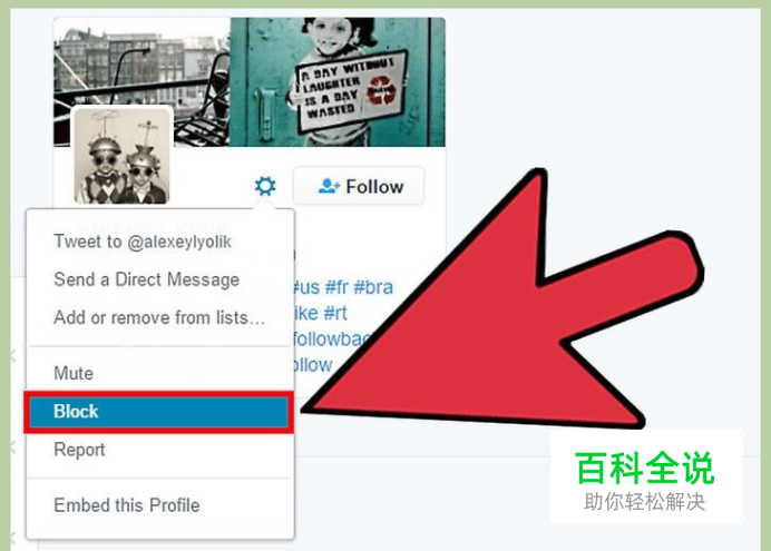 确认拉黑用户。成功拉黑用户后,你不会收到Twitter发来的确认信息。不过你能看到原来的“关注”按钮变成了“拉黑”按钮。