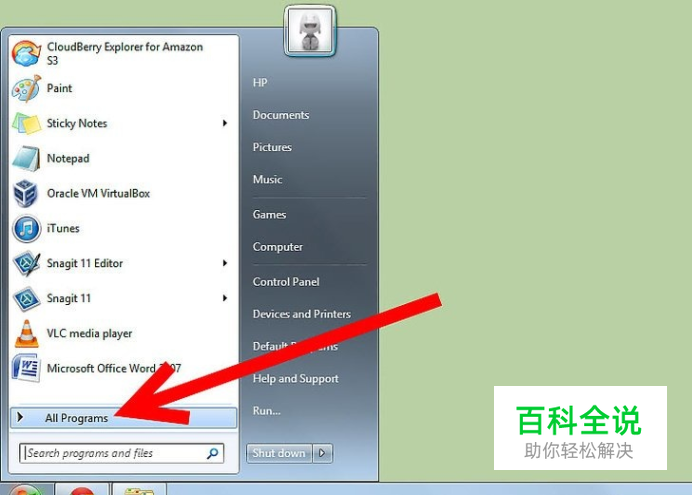 点击Windows键,选择“所有程序”。