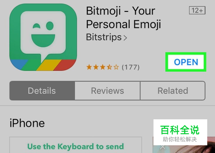 打开“Bitmoji”程序。程序的图标是绿色的,上面有一个白色、眨眼睛的图案。程序位于主屏幕或应用程序文件夹里。