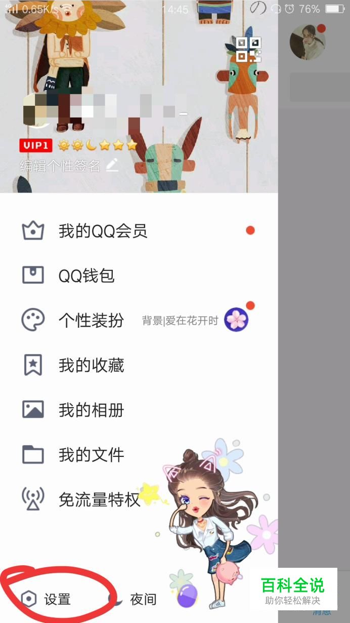 进入QQ后,向右滑动屏幕,点击界面左下角的设置。
