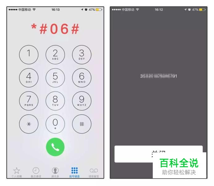 手机拨号界面输入 *#06#,然后会跳出手机的IMEI 号,或者在包装盒上找到自己手机的IMEI 号。