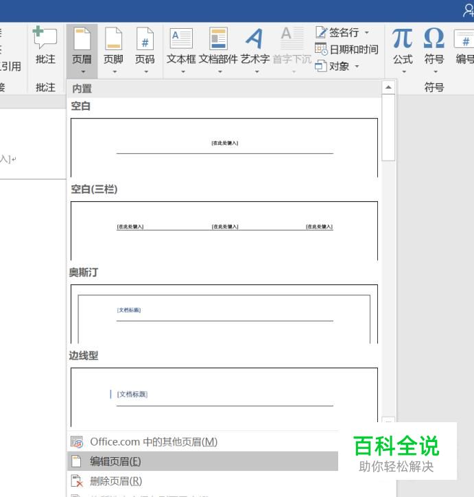 在打开的页眉面板中选择“编辑页眉”。