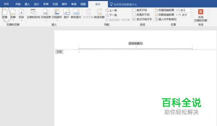 打开“页眉和页脚工具”功能区,在“设计”中分别调整“页眉顶端距离”和“页脚底端距离”编辑框的数值。