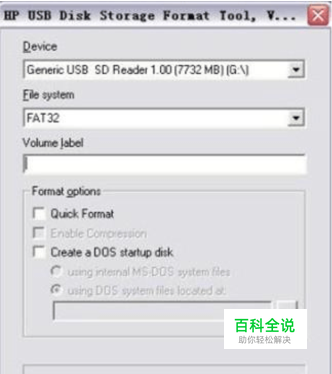 第二步,在弹出的HP USB Disk Storage Tool窗口中点击“Start”键(一定要确认“Device”项是你想要格式化的U盘)