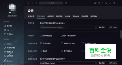 为什么会卡,和缓存目录有一定关系。网络流畅,但是播放重复段,图中我的缓存目录是D盘(不知道自己缓存目录的点击QQ音乐右上角的主菜单,有一个设置,里面可以找到缓存目录...)