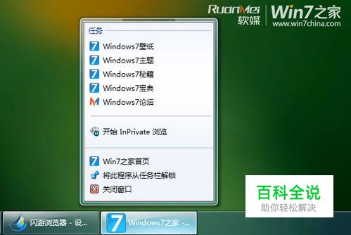 固定网站 如果您经常访问某些网页,使用“固定网站”功能,就可以从 Windows 7 桌面上的任务栏直接进行访问。将网站固定到任务栏以便即时导航固定网站非常简单: 单击地址栏中 Web 地址左侧的图标(或“新建选项卡”页上的网站图标)并将其拖动到任务栏,该网站图标会一直显示在此处,直到删除为止。以后单击该图标时,就会在 Internet Explorer 中打开该网站。 打开固定的网站时,网站图标显示在浏览器顶部,因此您可以很方便地访问网站主页(除了首要主页之外,您还可以添加多个主页选项卡)。 “返回”和“前进”按钮颜色会更改,以与图标颜色匹配。