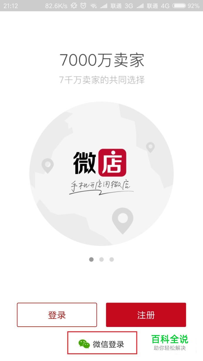 首先,我们需要在手机上安装微店应用APP,然后在主页面中,点击使用“微信账号”登录。