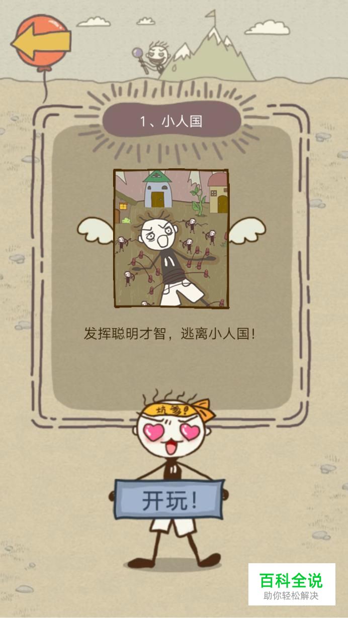 第一关:挠史小坑的脚底,然后笑出的眼泪水可以淹死小人哦,这样史小坑就得救了。
