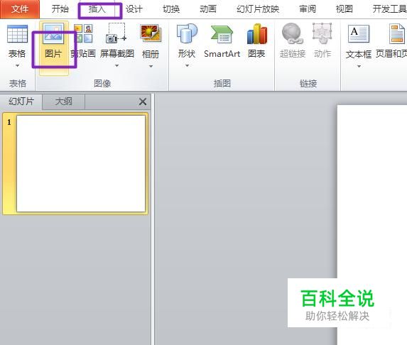 首先,我们点击打开ppt,点击插入,点击图片;