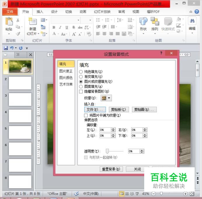 在弹出的对话框中,点击“图片或纹理填充”