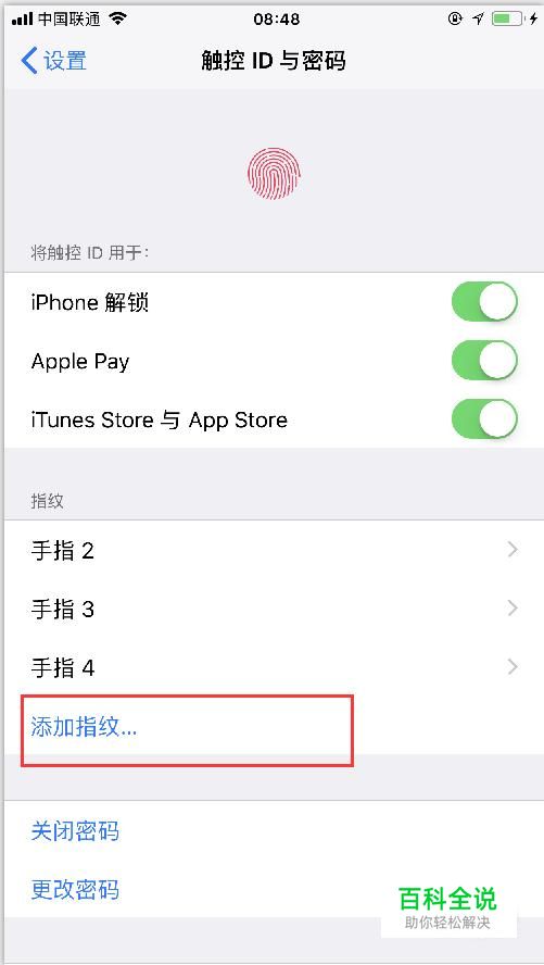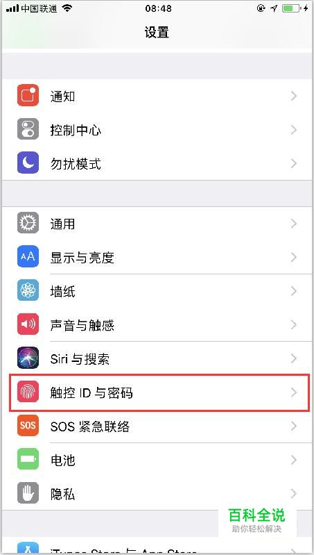首先,我们来录入指纹信息,点击设置-触控ID和密码,来到手机指纹密码设置页面,如图。