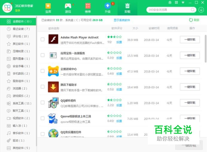 我们首先打开安全防护软件(比如360安全卫士或腾讯电脑管家),在其中的软件管理中把没用的软件卸载,或者卸载后需要的话在安装到别的磁盘