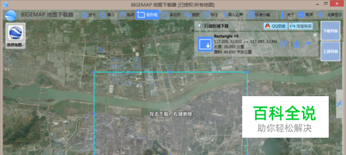 影像须使用BIGEMAP地图下载器中Google Earth无偏移影像,并具有无Google小水印、免封IP、影像更新更快等特点。首先在图源列表中选中Google Earth图源,实现与矢量数据准确套合、叠加。在此通过矩形区域选择下载边界,然后双击下载并选择合适的层级。