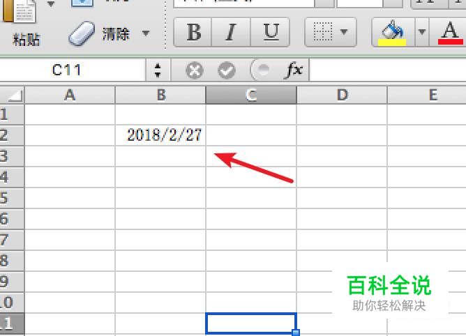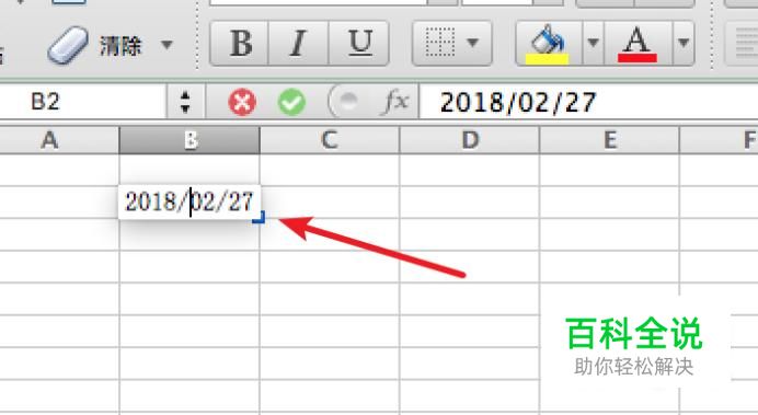 打开excel,在一个单元格上输入2018-02-27