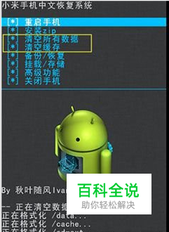 进入recovery(两种方法),双清数据(清空所有数据,清空缓存),开机状态下,菜单键进入系统设置——关于手机——系统更新——菜单键选择“重启到recovery”。