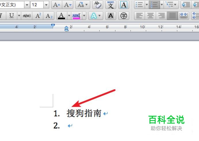 打开word,在一个文档上输入一个数字加文字,然后回车,在第二行就会加上自动的编号。