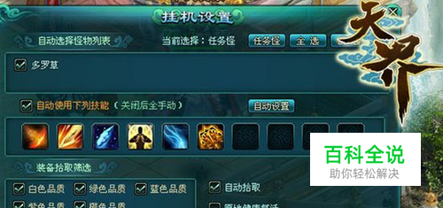 二、配置技能 在挂机过程中,玩家最好根据怪物的刷新速度配置好挂机技能。先选择AOE引怪、再放上单体技能的设定会来的十分给力。