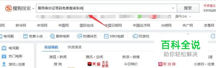 我们在浏览器上输入“居民身份证号码免费查询系统”,如图。
