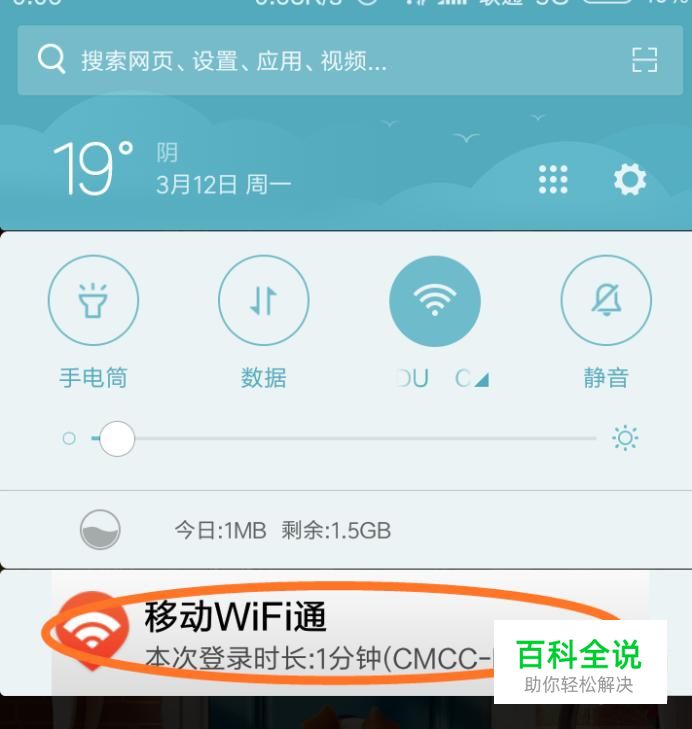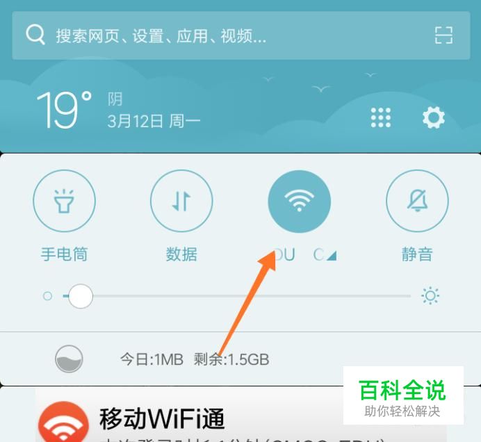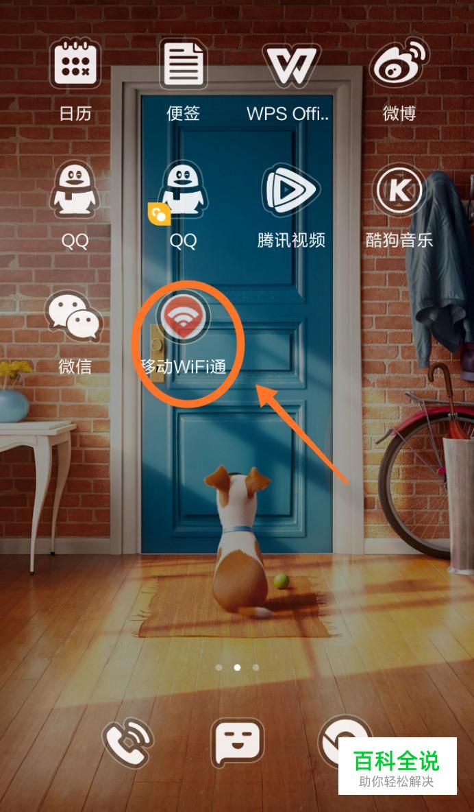 首先你得下一个软件,如图的移动WiFi通,这时候你没WiFi也没关系,用流量下载就行,因为它只需要几兆的流量。