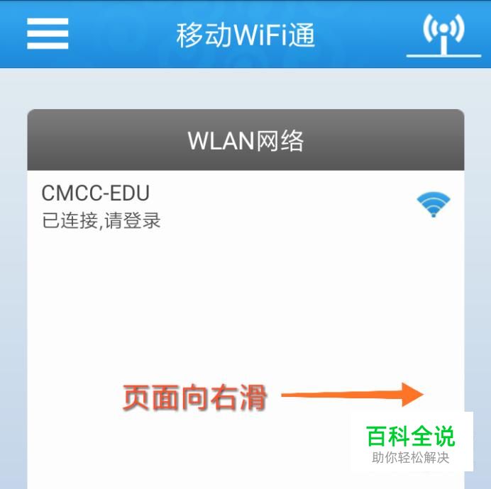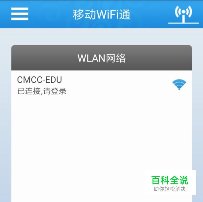 打开WiFi之后会自动连接上CMCC,不行的话自己调一下也是可以的。然后打开移动WiFi通,会看到下面这个界面,就自动连上CMCC,但是现在需要登录才能上网。