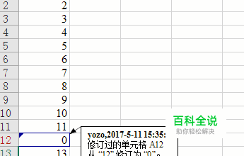 将鼠标放在该标识的位置,就会显示该单元格操作的记录